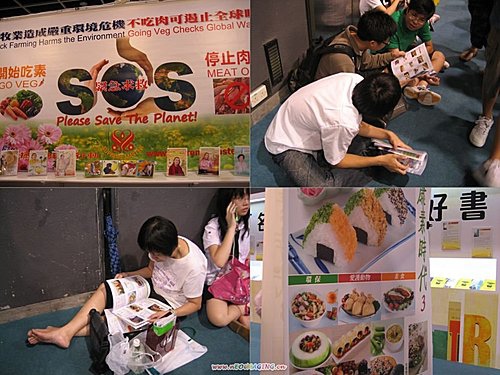 在諸多參展者中,有個特殊的攤位獨樹一格 清海無上師世界會小而美的展覽位置雖地處邊陲, 卻充滿著光明的活力和鮮明的人道訴求:「吃素、環保、救地球」 世界會的會員在現場發放免費素食食譜和地球暖化資訊 深獲民眾喜愛,許多人拿到刊物後愛不釋手 就地便翻看起來 看來關心地球暖化也是大多數人的心聲。