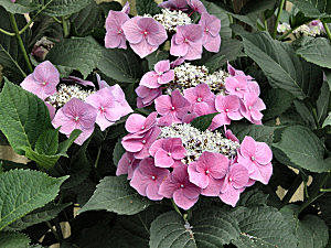 繡球花的花期長,每年春夏是繡球花盛開的季節。我曾經在美國的後院種了好幾株繡球花,顏色有白、有藍、也有紅,它們不是那種一般常見的飽滿球形、簇擁著花萼的大繡球花,而是帶著幾許蕾絲、只在花球邊上含蓄綻放一圈的蕾絲繡球,美國人稱這種為Lacecap Hydrangea。比起艷麗大朵的繡球,蕾絲繡球在市場上比較少見;或許是一叢叢盛開著的繡球比較搶眼,讓主人比較有成就感,買得人也就較多。