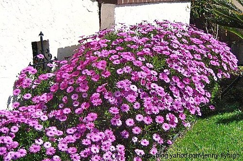 每天早上我出門送孩子的時候,就看見你家前院那一大片的花叢,開的好亮、好美,讓我一天精神都好。