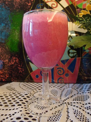 每天我隨機挑選不同的水果,打出來的口味、顏色沒有一天是一樣的,家人有新鮮感,也期待著不同的驚喜,不知道我會出什麼招數。為果汁命名,也成為早餐桌上的一件趣事。就像今天吧,這杯粉紅、甜甜又點薑辣的果汁該取什麼名字好呢?有人出鬼點子,說這不就像現代派的女生嗎?好啦,就稱她做 "Pink Lady"好啦!!