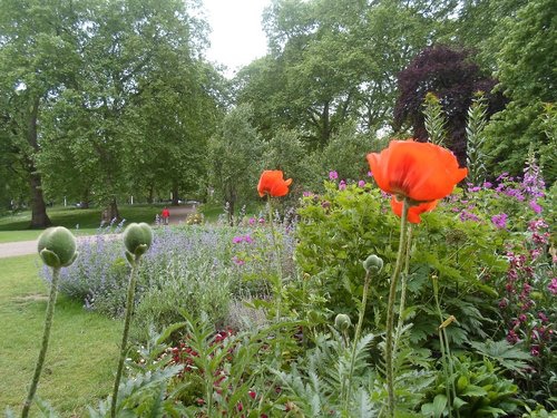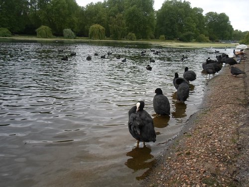 隨著侍衛隊的離去,遊人也逐漸散去。我和Candy信步走到維多利亞廣場右前方的聖詹姆士公園。公園入口處有幾個小食亭,看完衛兵交換儀式的許多遊人就在這裡排隊等著買熱狗、三明治。我們早上起得晚,此時並不感到飢餓,況且自己隨身還帶有一些南瓜子。於是我們一面走,一面吃著去了殼的南瓜子,漫無目地的隨便走著。