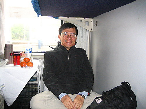 我們出發前三天才去買票,軟臥早已售罄,只剩下硬臥,於是先生買了上下舖兩張票。上了火車我們才曉得,原來硬臥是一個無門的廂房,裡面共有六個臥鋪,左右各分上、中、下。我們買的是上、下鋪,中間還有個中鋪。既來之,則安之。上了火車,找到自己的臥鋪,跟著別人有樣學樣的擺好行李,倒頭便躺到臥舖上休息。我睡的是上鋪,得爬梯子才上得去。上鋪轉圜空間很小,只能躺,不能坐,我 和 先生中間又隔著中鋪,要聊天也不方便,我自己也累了一天,於是便索性躺下休息。一路腦袋瓜兒胡思亂想,一面聽著火車鐵軌有節奏的隆隆聲,不知不覺竟沉沉入睡,一覺到天明。